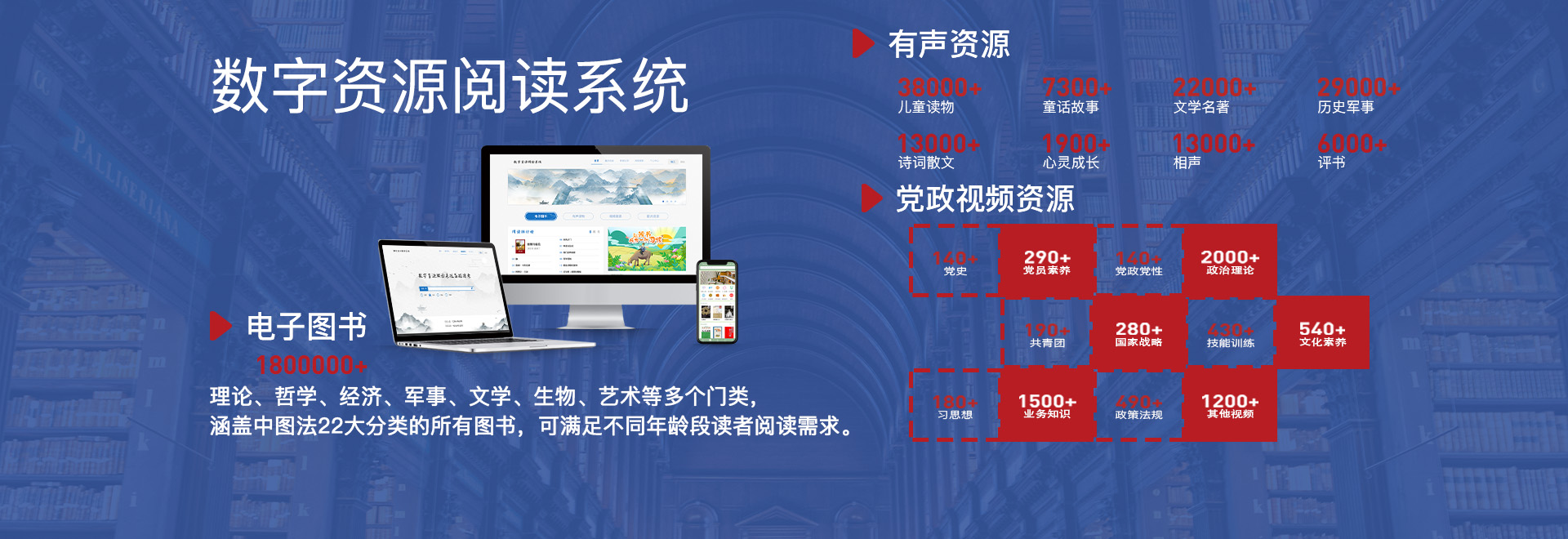 數字圖書館系統(電子閱覽室系統)作為一種功能強大且應用廣泛的知識管理平臺,在當今數字化時代發揮著至關重要的作用。它專為各級學校、企業、政府、醫院、部隊等各類機構的信息服務中心、數字資料中心、圖書管理中心以及電子傳播中心量身定制。可提供160萬冊數字資源。 該系統是構建信息高速公路的核心框架,能夠高效地實現電子圖書及豐富多樣的多媒體資源的閱讀與精細化管理。同時,它還是一個充滿活力的互動平臺及信息門戶,為信息的發布和資源的共享提供了便捷的渠道。